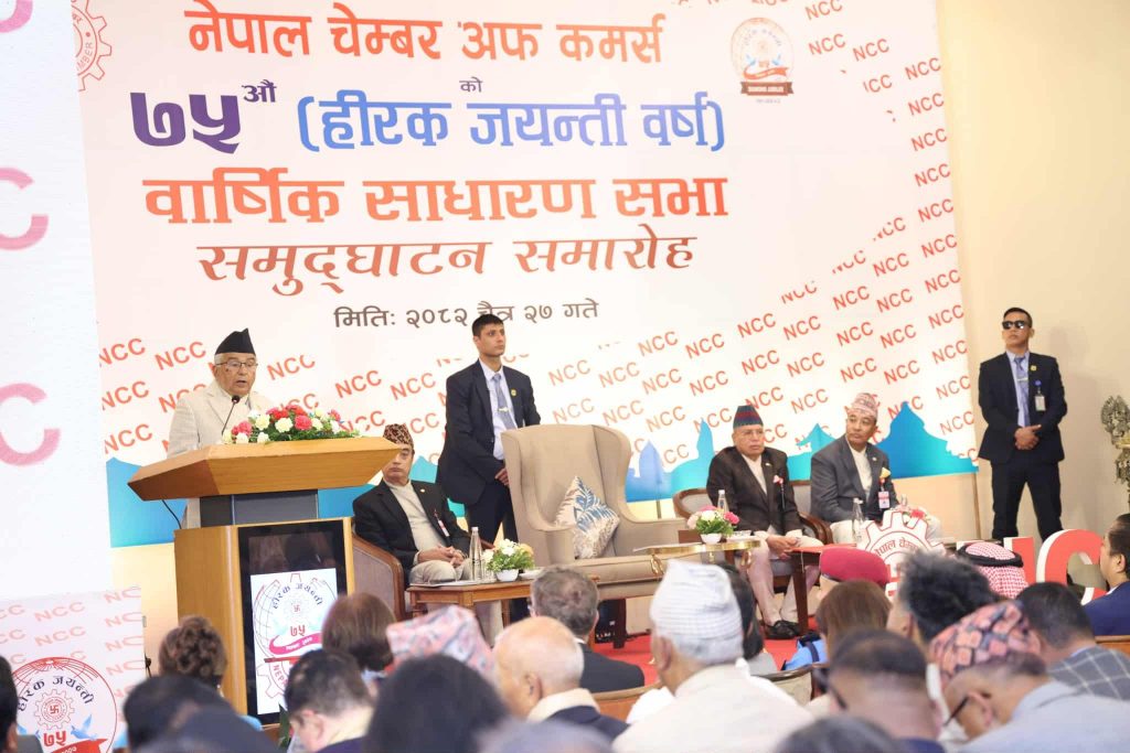 Addressing the 75th Annual General Meeting and Diamond Jubilee ceremony of the Nepal Chamber of Commerce on Friday, the President said strengthening the federal democratic republic requires sustained focus on economic development aligned with public aspirations.