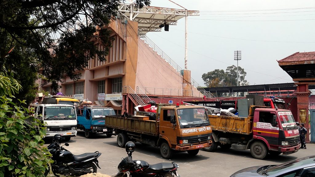 After the demolition of illegally constructed structures in Thapathali, the families have been brought to the stadium with necessary provisions. Meanwhile, the process of dismantling the landless squatters’ settlement located in Garigaun, Kathmandu Metropolitan City-9, is in progress.