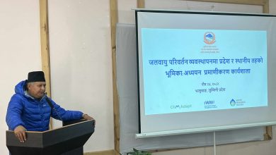 दाङ । लुम्बिनी प्रदेशका मुख्यमन्त्री चेतनारायण आचार्यले जलवायु परिवर्तनको असर कम गर्न प्रदेश सरकारले वैज्ञानिक आधारमा कार्ययोजना तयार गर्ने बनाउनु भएको छ । दाङको भालुबाङमा…